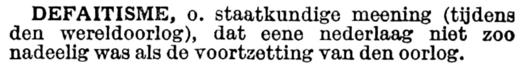 Toen in 1924 de zesde editie verscheen, was de Eerste Wereldoorlog voorbij. Wereldoorlog is het duidelijkste spoor. Dat maakte niet alleen zijn debuut in het woordenboek (“oorlog tusschen vele volken, over een groot deel der wereld”), maar figureerde ook in vijftien omschrijvingen en voorbeeldzinnen. De redactie had voor deze editie “de militaire woorden geheel herzien”. Zo werd granaatwerper verwelkomd, evenals loopgraafstelsel, niemandsland en defaitisme: