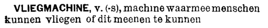 In dezelfde editie maakt het woord vliegmachine zijn debuut, met de nogal sceptisch klinkende definitie: